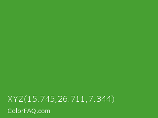 XYZ 15.745,26.711,7.344 Color is a normal green color and the nearest color is Apple #4fa83d. Hex code #47a032 and RGB value is rgb(71,160,50). In RGB color space, this color is composed of 28% red, 63% green, 20% blue, In CMYK color space, this color is composed of 56% cyan, 0% magenta, 69% yellow , 37% black , In HSL color space, this color has a hue angle of 109° , 52% saturation and 41% lightness.