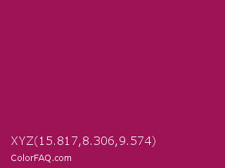 XYZ 15.817,8.306,9.574 Color is a normal rose color and the nearest color is Jazzberry Jam #a50b5e. Hex code #9d1356 and RGB value is rgb(157,19,86). In RGB color space, this color is composed of 62% red, 7% green, 34% blue, In CMYK color space, this color is composed of 0% cyan, 88% magenta, 45% yellow , 38% black , In HSL color space, this color has a hue angle of 331° , 78% saturation and 35% lightness.