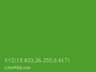 XYZ 15.823,26.255,6.617 Color is a normal green color and the nearest color is Apple #4fa83d. Hex code #4e9e2c and RGB value is rgb(78,158,44). In RGB color space, this color is composed of 31% red, 62% green, 17% blue, In CMYK color space, this color is composed of 51% cyan, 0% magenta, 72% yellow , 38% black , In HSL color space, this color has a hue angle of 102° , 56% saturation and 40% lightness.