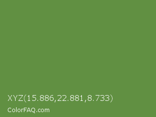 XYZ 15.886,22.881,8.733 Color is a normal green color and the nearest color is Palm Leaf #6f9940. Hex code #619042 and RGB value is rgb(97,144,66). In RGB color space, this color is composed of 38% red, 56% green, 26% blue, In CMYK color space, this color is composed of 33% cyan, 0% magenta, 54% yellow , 44% black , In HSL color space, this color has a hue angle of 96° , 37% saturation and 41% lightness.