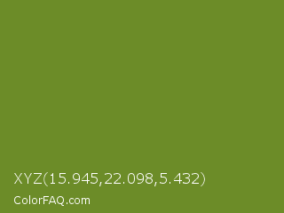 XYZ 15.945,22.098,5.432 Color is a normal lime color and the nearest color is Olive Drab #6b8e23. Hex code #6c8c28 and RGB value is rgb(108,140,40). In RGB color space, this color is composed of 42% red, 55% green, 16% blue, In CMYK color space, this color is composed of 23% cyan, 0% magenta, 71% yellow , 45% black , In HSL color space, this color has a hue angle of 79° , 56% saturation and 35% lightness.