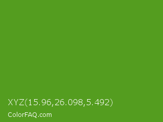 XYZ 15.96,26.098,5.492 Color is a normal green color and the nearest color is Vida Loca #549019. Hex code #549d1f and RGB value is rgb(84,157,31). In RGB color space, this color is composed of 33% red, 62% green, 12% blue, In CMYK color space, this color is composed of 46% cyan, 0% magenta, 80% yellow , 38% black , In HSL color space, this color has a hue angle of 95° , 67% saturation and 37% lightness.