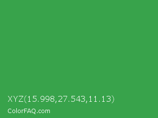 XYZ 15.998,27.543,11.13 Color is a normal green color and the nearest color is Chateau Green #40a860. Hex code #38a34b and RGB value is rgb(56,163,75). In RGB color space, this color is composed of 22% red, 64% green, 29% blue, In CMYK color space, this color is composed of 66% cyan, 0% magenta, 54% yellow , 36% black , In HSL color space, this color has a hue angle of 131° , 49% saturation and 43% lightness.