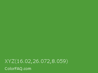 XYZ 16.02,26.072,8.059 Color is a normal green color and the nearest color is Apple #4fa83d. Hex code #4f9d39 and RGB value is rgb(79,157,57). In RGB color space, this color is composed of 31% red, 62% green, 22% blue, In CMYK color space, this color is composed of 50% cyan, 0% magenta, 64% yellow , 38% black , In HSL color space, this color has a hue angle of 107° , 47% saturation and 42% lightness.