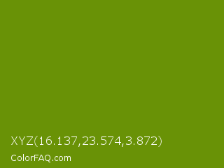 XYZ 16.137,23.574,3.872 Color is a dark lime color and the nearest color is Limeade #6f9d02. Hex code #699206 and RGB value is rgb(105,146,6). In RGB color space, this color is composed of 41% red, 57% green, 2% blue, In CMYK color space, this color is composed of 28% cyan, 0% magenta, 96% yellow , 43% black , In HSL color space, this color has a hue angle of 78° , 92% saturation and 30% lightness.
