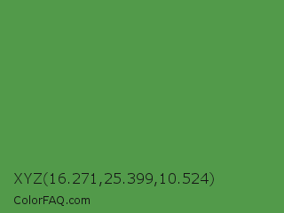 XYZ 16.271,25.399,10.524 Color is a normal green color and the nearest color is May Green #4c9141. Hex code #529a4a and RGB value is rgb(82,154,74). In RGB color space, this color is composed of 32% red, 60% green, 29% blue, In CMYK color space, this color is composed of 47% cyan, 0% magenta, 52% yellow , 40% black , In HSL color space, this color has a hue angle of 114° , 35% saturation and 45% lightness.