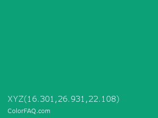 XYZ 16.301,26.931,22.108 Color is a normal green color and the nearest color is Gossamer #069b81. Hex code #0da178 and RGB value is rgb(13,161,120). In RGB color space, this color is composed of 5% red, 63% green, 47% blue, In CMYK color space, this color is composed of 92% cyan, 0% magenta, 25% yellow , 37% black , In HSL color space, this color has a hue angle of 163° , 85% saturation and 34% lightness.
