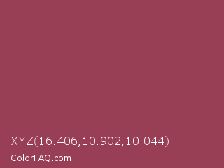 XYZ 16.406,10.902,10.044 Color is a normal rose color and the nearest color is Vin Rouge #983d61. Hex code #983f56 and RGB value is rgb(152,63,86). In RGB color space, this color is composed of 60% red, 25% green, 34% blue, In CMYK color space, this color is composed of 0% cyan, 59% magenta, 43% yellow , 40% black , In HSL color space, this color has a hue angle of 344° , 41% saturation and 42% lightness.