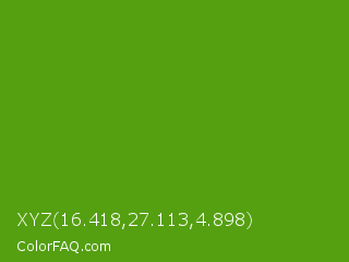 XYZ 16.418,27.113,4.898 Color is a normal green color and the nearest color is Vida Loca #549019. Hex code #55a011 and RGB value is rgb(85,160,17). In RGB color space, this color is composed of 33% red, 63% green, 7% blue, In CMYK color space, this color is composed of 47% cyan, 0% magenta, 89% yellow , 37% black , In HSL color space, this color has a hue angle of 91° , 81% saturation and 35% lightness.