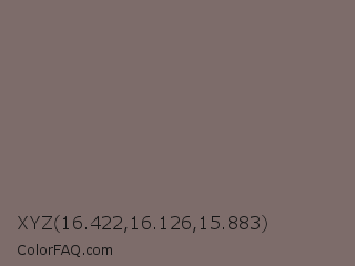 XYZ 16.422,16.126,15.883 Color is a normal red color and the nearest color is Sand Dune #826f65. Hex code #7d6c6a and RGB value is rgb(125,108,106). In RGB color space, this color is composed of 49% red, 42% green, 42% blue, In CMYK color space, this color is composed of 0% cyan, 14% magenta, 15% yellow , 51% black , In HSL color space, this color has a hue angle of 6° , 8% saturation and 45% lightness.