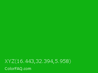 XYZ 16.443,32.394,5.958 Color is a normal green color and the nearest color is Slimy Green #299617. Hex code #10b312 and RGB value is rgb(16,179,18). In RGB color space, this color is composed of 6% red, 70% green, 7% blue, In CMYK color space, this color is composed of 91% cyan, 0% magenta, 90% yellow , 30% black , In HSL color space, this color has a hue angle of 121° , 84% saturation and 38% lightness.