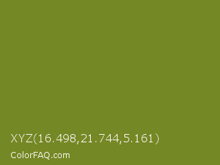 XYZ 16.498,21.744,5.161 Color is a normal lime color and the nearest color is Wasabi #788a25. Hex code #748926 and RGB value is rgb(116,137,38). In RGB color space, this color is composed of 45% red, 54% green, 15% blue, In CMYK color space, this color is composed of 15% cyan, 0% magenta, 72% yellow , 46% black , In HSL color space, this color has a hue angle of 73° , 57% saturation and 34% lightness.