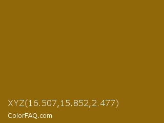XYZ 16.507,15.852,2.477 Color is a dark orange color and the nearest color is Corn Harvest #8b6b0b. Hex code #90680a and RGB value is rgb(144,104,10). In RGB color space, this color is composed of 56% red, 41% green, 4% blue, In CMYK color space, this color is composed of 0% cyan, 28% magenta, 93% yellow , 44% black , In HSL color space, this color has a hue angle of 42° , 87% saturation and 30% lightness.