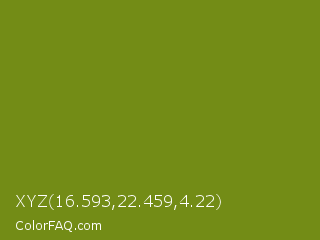 XYZ 16.593,22.459,4.22 Color is a normal lime color and the nearest color is Trendy Green #7c881a. Hex code #738c16 and RGB value is rgb(115,140,22). In RGB color space, this color is composed of 45% red, 55% green, 9% blue, In CMYK color space, this color is composed of 18% cyan, 0% magenta, 84% yellow , 45% black , In HSL color space, this color has a hue angle of 73° , 73% saturation and 32% lightness.