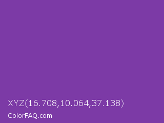 XYZ 16.708,10.064,37.138 Color is a normal purple color and the nearest color is Grape #6f2da8. Hex code #7c3aa6 and RGB value is rgb(124,58,166). In RGB color space, this color is composed of 49% red, 23% green, 65% blue, In CMYK color space, this color is composed of 25% cyan, 65% magenta, 0% yellow , 35% black , In HSL color space, this color has a hue angle of 277° , 48% saturation and 44% lightness.