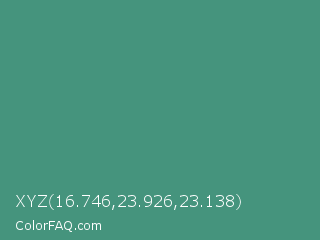 XYZ 16.746,23.926,23.138 Color is a normal green color and the nearest color is Wintergreen Dream #56887d. Hex code #45947d and RGB value is rgb(69,148,125). In RGB color space, this color is composed of 27% red, 58% green, 49% blue, In CMYK color space, this color is composed of 53% cyan, 0% magenta, 16% yellow , 42% black , In HSL color space, this color has a hue angle of 163° , 36% saturation and 43% lightness.