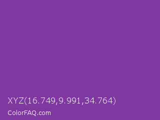 XYZ 16.749,9.991,34.764 Color is a normal purple color and the nearest color is Vivid Violet #803790. Hex code #8038a1 and RGB value is rgb(128,56,161). In RGB color space, this color is composed of 50% red, 22% green, 63% blue, In CMYK color space, this color is composed of 20% cyan, 65% magenta, 0% yellow , 37% black , In HSL color space, this color has a hue angle of 281° , 48% saturation and 43% lightness.