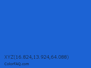 XYZ 16.824,13.924,64.088 Color is a normal blue color and the nearest color is Mariner #286acd. Hex code #1c63d4 and RGB value is rgb(28,99,212). In RGB color space, this color is composed of 11% red, 39% green, 83% blue, In CMYK color space, this color is composed of 87% cyan, 53% magenta, 0% yellow , 17% black , In HSL color space, this color has a hue angle of 217° , 77% saturation and 47% lightness.