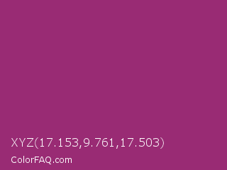 XYZ 17.153,9.761,17.503 Color is a normal magenta color and the nearest color is Amaranth Deep Purple #9f2b68. Hex code #992b74 and RGB value is rgb(153,43,116). In RGB color space, this color is composed of 60% red, 17% green, 45% blue, In CMYK color space, this color is composed of 0% cyan, 72% magenta, 24% yellow , 40% black , In HSL color space, this color has a hue angle of 320° , 56% saturation and 38% lightness.