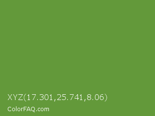 XYZ 17.301,25.741,8.06 Color is a normal green color and the nearest color is Palm Leaf #6f9940. Hex code #63993a and RGB value is rgb(99,153,58). In RGB color space, this color is composed of 39% red, 60% green, 23% blue, In CMYK color space, this color is composed of 35% cyan, 0% magenta, 62% yellow , 40% black , In HSL color space, this color has a hue angle of 94° , 45% saturation and 41% lightness.