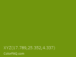 XYZ 17.789,25.352,4.337 Color is a normal lime color and the nearest color is Limeade #6f9d02. Hex code #71960d and RGB value is rgb(113,150,13). In RGB color space, this color is composed of 44% red, 59% green, 5% blue, In CMYK color space, this color is composed of 25% cyan, 0% magenta, 91% yellow , 41% black , In HSL color space, this color has a hue angle of 76° , 84% saturation and 32% lightness.