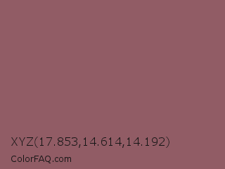 XYZ 17.853,14.614,14.192 Color is a normal red color and the nearest color is Rose Taupe #905d5d. Hex code #915c65 and RGB value is rgb(145,92,101). In RGB color space, this color is composed of 57% red, 36% green, 40% blue, In CMYK color space, this color is composed of 0% cyan, 37% magenta, 30% yellow , 43% black , In HSL color space, this color has a hue angle of 350° , 22% saturation and 46% lightness.