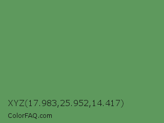 XYZ 17.983,25.952,14.417 Color is a normal green color and the nearest color is Russian Green #679267. Hex code #5e995d and RGB value is rgb(94,153,93). In RGB color space, this color is composed of 37% red, 60% green, 36% blue, In CMYK color space, this color is composed of 39% cyan, 0% magenta, 39% yellow , 40% black , In HSL color space, this color has a hue angle of 119° , 24% saturation and 48% lightness.