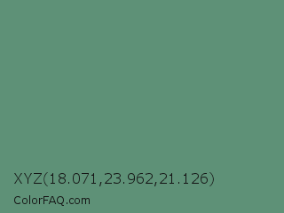 XYZ 18.071,23.962,21.126 Color is a normal green color and the nearest color is Viridian Green #678975. Hex code #5e9177 and RGB value is rgb(94,145,119). In RGB color space, this color is composed of 37% red, 57% green, 47% blue, In CMYK color space, this color is composed of 35% cyan, 0% magenta, 18% yellow , 43% black , In HSL color space, this color has a hue angle of 149° , 21% saturation and 47% lightness.