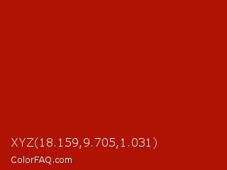 XYZ 18.159,9.705,1.031 Color is a normal red color and the nearest color is Milano Red #b81104. Hex code #b01304 and RGB value is rgb(176,19,4). In RGB color space, this color is composed of 69% red, 7% green, 2% blue, In CMYK color space, this color is composed of 0% cyan, 89% magenta, 98% yellow , 31% black , In HSL color space, this color has a hue angle of 5° , 96% saturation and 35% lightness.