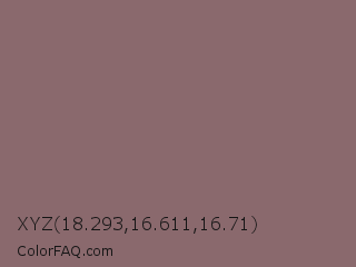 XYZ 18.293,16.611,16.71 Color is a normal red color and the nearest color is Opium #8e6f70. Hex code #8a696d and RGB value is rgb(138,105,109). In RGB color space, this color is composed of 54% red, 41% green, 43% blue, In CMYK color space, this color is composed of 0% cyan, 24% magenta, 21% yellow , 46% black , In HSL color space, this color has a hue angle of 353° , 14% saturation and 48% lightness.