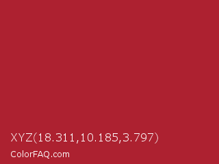 XYZ 18.311,10.185,3.797 Color is a normal red color and the nearest color is Upsdell Red #ae2029. Hex code #ad2130 and RGB value is rgb(173,33,48). In RGB color space, this color is composed of 68% red, 13% green, 19% blue, In CMYK color space, this color is composed of 0% cyan, 81% magenta, 72% yellow , 32% black , In HSL color space, this color has a hue angle of 354° , 68% saturation and 40% lightness.
