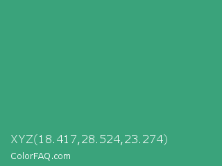 XYZ 18.417,28.524,23.274 Color is a normal green color and the nearest color is Ocean Green #41aa78. Hex code #3aa37b and RGB value is rgb(58,163,123). In RGB color space, this color is composed of 23% red, 64% green, 48% blue, In CMYK color space, this color is composed of 64% cyan, 0% magenta, 25% yellow , 36% black , In HSL color space, this color has a hue angle of 157° , 48% saturation and 43% lightness.