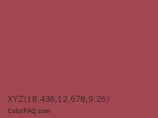 XYZ 18.436,12.678,9.26 Color is a normal red color and the nearest color is English Red #ab4b52. Hex code #a14751 and RGB value is rgb(161,71,81). In RGB color space, this color is composed of 63% red, 28% green, 32% blue, In CMYK color space, this color is composed of 0% cyan, 56% magenta, 50% yellow , 37% black , In HSL color space, this color has a hue angle of 353° , 39% saturation and 45% lightness.