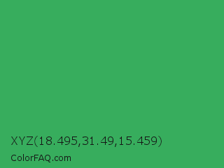 XYZ 18.495,31.49,15.459 Color is a normal green color and the nearest color is Chateau Green #40a860. Hex code #37ad5d and RGB value is rgb(55,173,93). In RGB color space, this color is composed of 22% red, 68% green, 36% blue, In CMYK color space, this color is composed of 68% cyan, 0% magenta, 46% yellow , 32% black , In HSL color space, this color has a hue angle of 139° , 52% saturation and 45% lightness.