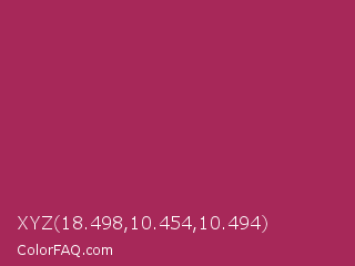 XYZ 18.498,10.454,10.494 Color is a normal rose color and the nearest color is Amaranth Purple #ab274f. Hex code #a72859 and RGB value is rgb(167,40,89). In RGB color space, this color is composed of 65% red, 16% green, 35% blue, In CMYK color space, this color is composed of 0% cyan, 76% magenta, 47% yellow , 35% black , In HSL color space, this color has a hue angle of 337° , 61% saturation and 41% lightness.