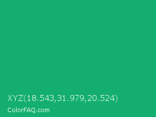 XYZ 18.543,31.979,20.524 Color is a normal green color and the nearest color is Green Crayola #1cac78. Hex code #14af70 and RGB value is rgb(20,175,112). In RGB color space, this color is composed of 8% red, 69% green, 44% blue, In CMYK color space, this color is composed of 89% cyan, 0% magenta, 36% yellow , 31% black , In HSL color space, this color has a hue angle of 156° , 79% saturation and 38% lightness.