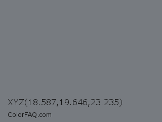 XYZ 18.587,19.646,23.235 Color is a normal blue color and the nearest color is Rolling Stone #747d83. Hex code #777b80 and RGB value is rgb(119,123,128). In RGB color space, this color is composed of 47% red, 48% green, 50% blue, In CMYK color space, this color is composed of 7% cyan, 4% magenta, 0% yellow , 50% black , In HSL color space, this color has a hue angle of 213° , 4% saturation and 48% lightness.