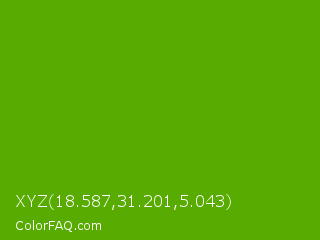 XYZ 18.587,31.201,5.043 Color is a normal green color and the nearest color is Christi #67a712. Hex code #58ab00 and RGB value is rgb(88,171,0). In RGB color space, this color is composed of 35% red, 67% green, 0% blue, In CMYK color space, this color is composed of 49% cyan, 0% magenta, 100% yellow , 33% black , In HSL color space, this color has a hue angle of 89° , 100% saturation and 34% lightness.