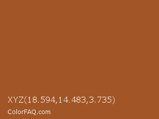 XYZ 18.594,14.483,3.735 Color is a normal orange color and the nearest color is Paarl #a65529. Hex code #a25627 and RGB value is rgb(162,86,39). In RGB color space, this color is composed of 64% red, 34% green, 15% blue, In CMYK color space, this color is composed of 0% cyan, 47% magenta, 76% yellow , 36% black , In HSL color space, this color has a hue angle of 23° , 61% saturation and 39% lightness.