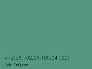 XYZ 18.702,26.109,24.132 Color is a normal green color and the nearest color is Wintergreen Dream #56887d. Hex code #52997f and RGB value is rgb(82,153,127). In RGB color space, this color is composed of 32% red, 60% green, 50% blue, In CMYK color space, this color is composed of 46% cyan, 0% magenta, 17% yellow , 40% black , In HSL color space, this color has a hue angle of 158° , 30% saturation and 46% lightness.