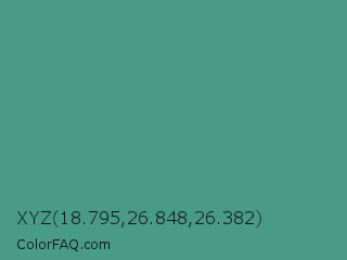 XYZ 18.795,26.848,26.382 Color is a normal cyan color and the nearest color is Ocean Green #41aa78. Hex code #489c85 and RGB value is rgb(72,156,133). In RGB color space, this color is composed of 28% red, 61% green, 52% blue, In CMYK color space, this color is composed of 54% cyan, 0% magenta, 15% yellow , 39% black , In HSL color space, this color has a hue angle of 164° , 37% saturation and 45% lightness.