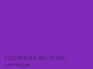XYZ 18.816,9.841,47.921 Color is a normal purple color and the nearest color is Grape #6f2da8. Hex code #8129bb and RGB value is rgb(129,41,187). In RGB color space, this color is composed of 51% red, 16% green, 73% blue, In CMYK color space, this color is composed of 31% cyan, 78% magenta, 0% yellow , 27% black , In HSL color space, this color has a hue angle of 276° , 64% saturation and 45% lightness.