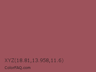 XYZ 18.81,13.958,11.6 Color is a normal red color and the nearest color is Middle Red Purple #a55353. Hex code #9d525b and RGB value is rgb(157,82,91). In RGB color space, this color is composed of 62% red, 32% green, 36% blue, In CMYK color space, this color is composed of 0% cyan, 48% magenta, 42% yellow , 38% black , In HSL color space, this color has a hue angle of 353° , 31% saturation and 47% lightness.