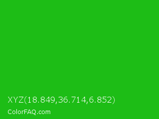 XYZ 18.849,36.714,6.852 Color is a normal green color and the nearest color is Lime Green #32cd32. Hex code #1dbd16 and RGB value is rgb(29,189,22). In RGB color space, this color is composed of 11% red, 74% green, 9% blue, In CMYK color space, this color is composed of 85% cyan, 0% magenta, 88% yellow , 26% black , In HSL color space, this color has a hue angle of 117° , 79% saturation and 41% lightness.