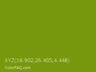 XYZ 18.902,26.405,4.448 Color is a normal lime color and the nearest color is Limeade #6f9d02. Hex code #77980c and RGB value is rgb(119,152,12). In RGB color space, this color is composed of 47% red, 60% green, 5% blue, In CMYK color space, this color is composed of 22% cyan, 0% magenta, 92% yellow , 40% black , In HSL color space, this color has a hue angle of 74° , 85% saturation and 32% lightness.