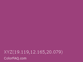 XYZ 19.119,12.165,20.079 Color is a normal magenta color and the nearest color is Magenta Haze #9f4576. Hex code #9c407b and RGB value is rgb(156,64,123). In RGB color space, this color is composed of 61% red, 25% green, 48% blue, In CMYK color space, this color is composed of 0% cyan, 59% magenta, 21% yellow , 39% black , In HSL color space, this color has a hue angle of 322° , 42% saturation and 43% lightness.