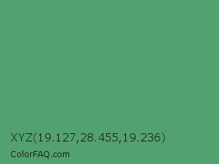 XYZ 19.127,28.455,19.236 Color is a normal green color and the nearest color is Aqua Forest #5fa777. Hex code #53a16e and RGB value is rgb(83,161,110). In RGB color space, this color is composed of 33% red, 63% green, 43% blue, In CMYK color space, this color is composed of 48% cyan, 0% magenta, 32% yellow , 37% black , In HSL color space, this color has a hue angle of 141° , 32% saturation and 48% lightness.