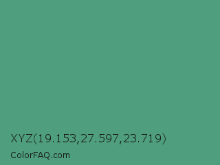 XYZ 19.153,27.597,23.719 Color is a normal green color and the nearest color is Shiny Shamrock #5fa778. Hex code #4f9e7d and RGB value is rgb(79,158,125). In RGB color space, this color is composed of 31% red, 62% green, 49% blue, In CMYK color space, this color is composed of 50% cyan, 0% magenta, 21% yellow , 38% black , In HSL color space, this color has a hue angle of 155° , 33% saturation and 46% lightness.