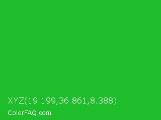 XYZ 19.199,36.861,8.388 Color is a normal green color and the nearest color is Wageningen Green #34b233. Hex code #1fbd2b and RGB value is rgb(31,189,43). In RGB color space, this color is composed of 12% red, 74% green, 17% blue, In CMYK color space, this color is composed of 84% cyan, 0% magenta, 77% yellow , 26% black , In HSL color space, this color has a hue angle of 125° , 72% saturation and 43% lightness.