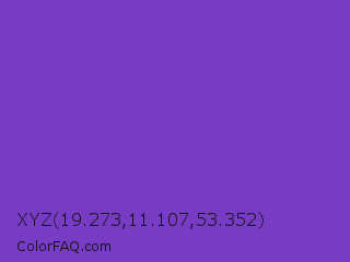 XYZ 19.273,11.107,53.352 Color is a normal violet color and the nearest color is Purple Heart Crayola #652dc1. Hex code #783bc4 and RGB value is rgb(120,59,196). In RGB color space, this color is composed of 47% red, 23% green, 77% blue, In CMYK color space, this color is composed of 39% cyan, 70% magenta, 0% yellow , 23% black , In HSL color space, this color has a hue angle of 267° , 54% saturation and 50% lightness.
